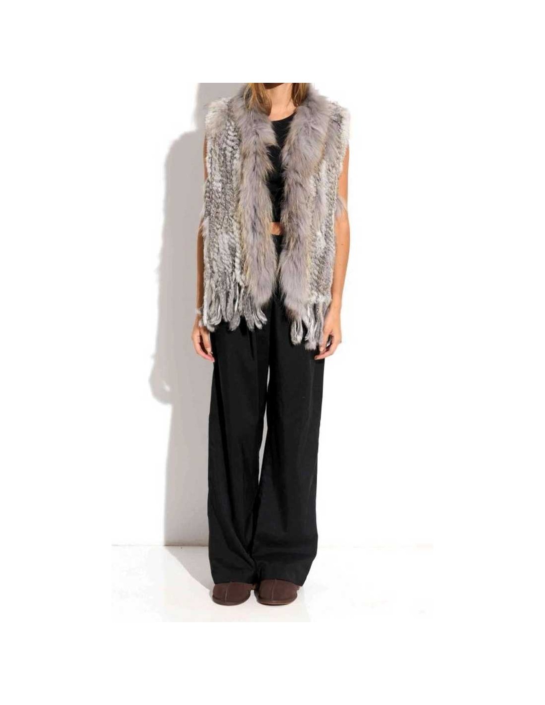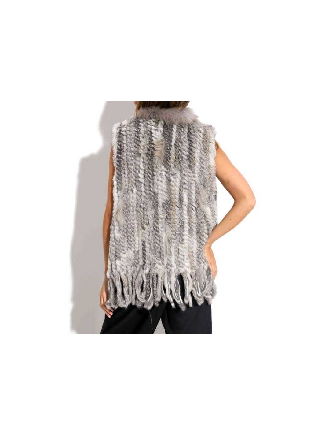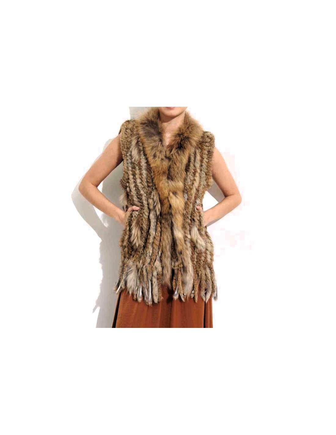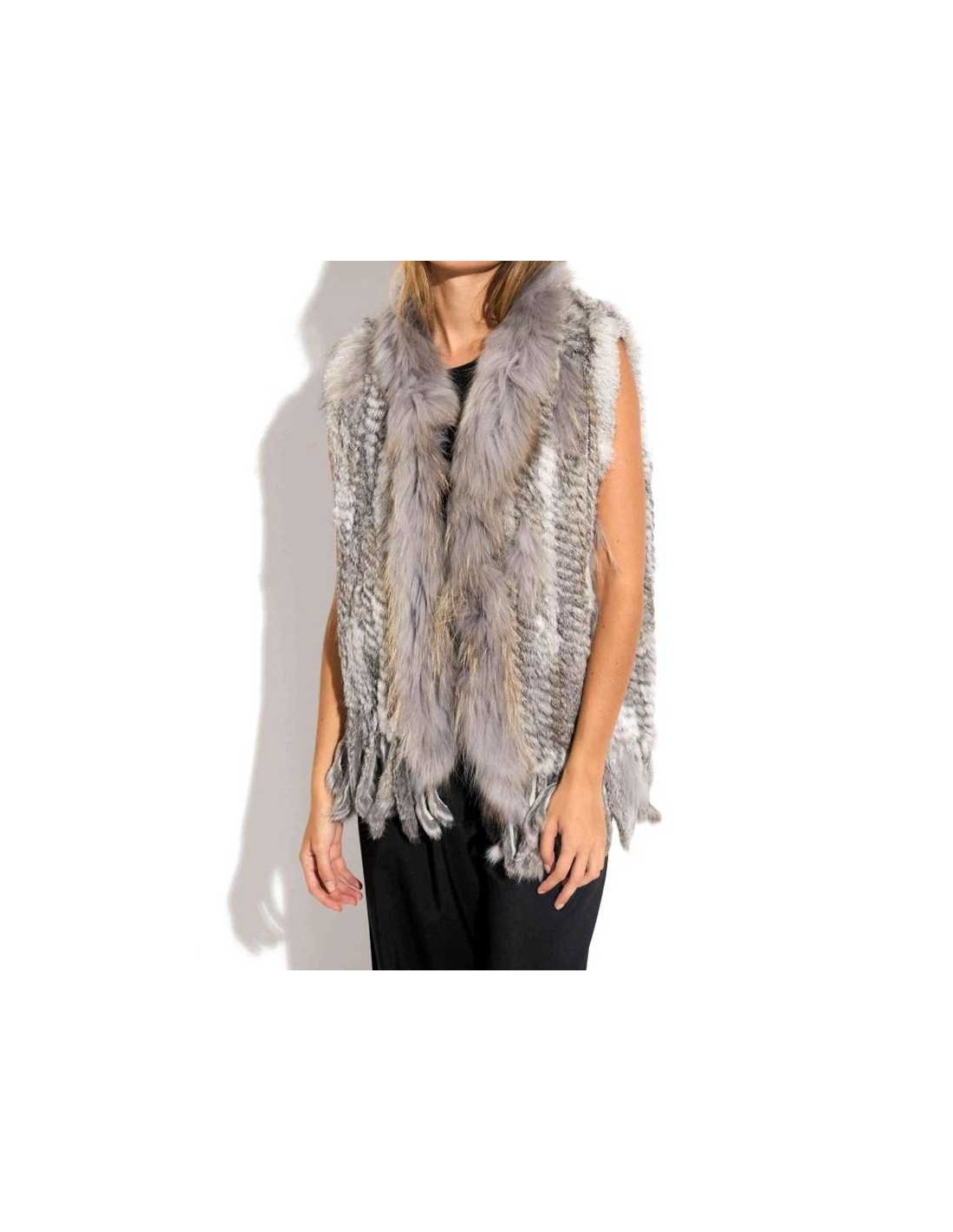 Chaleco de pelo de conejo con flecos combinado con zorro
