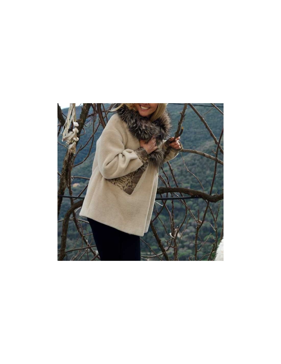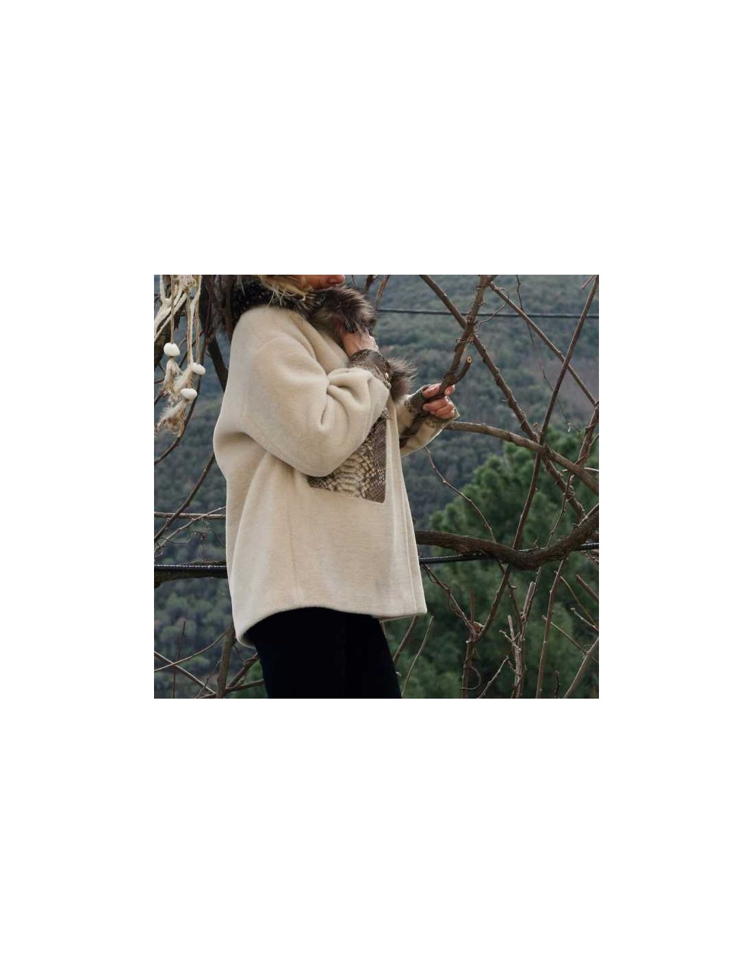 Parka de Mujer Confeccionado en Tejido Alkantara Combinado con Piel Grabada, Cuello de Pelo Natural Desmontable