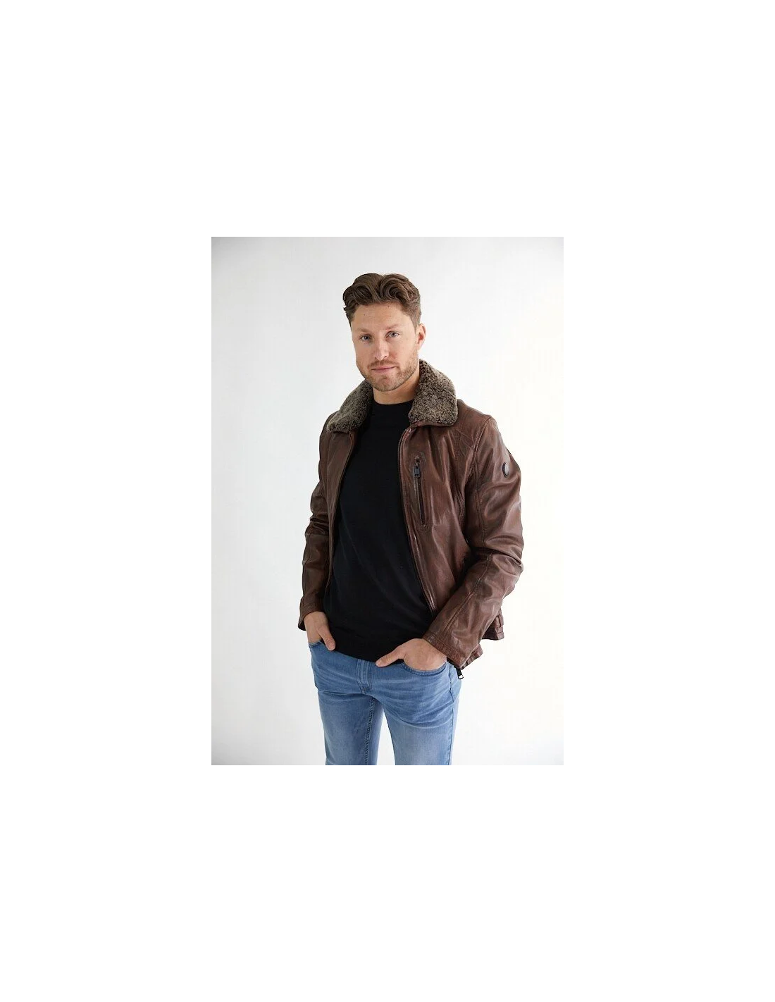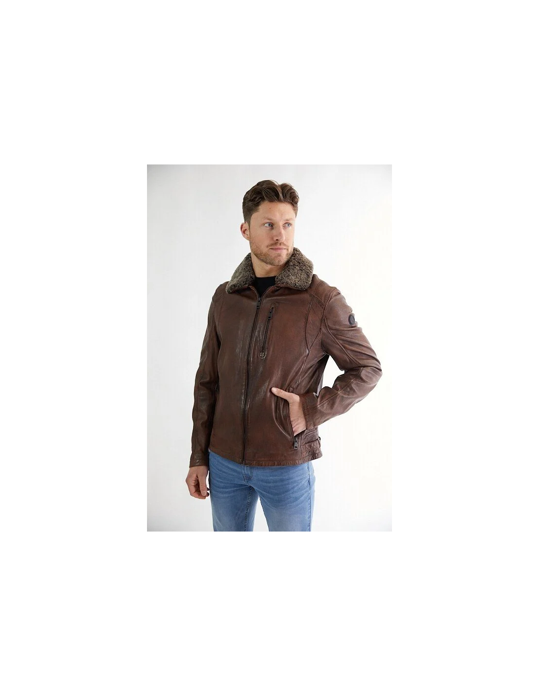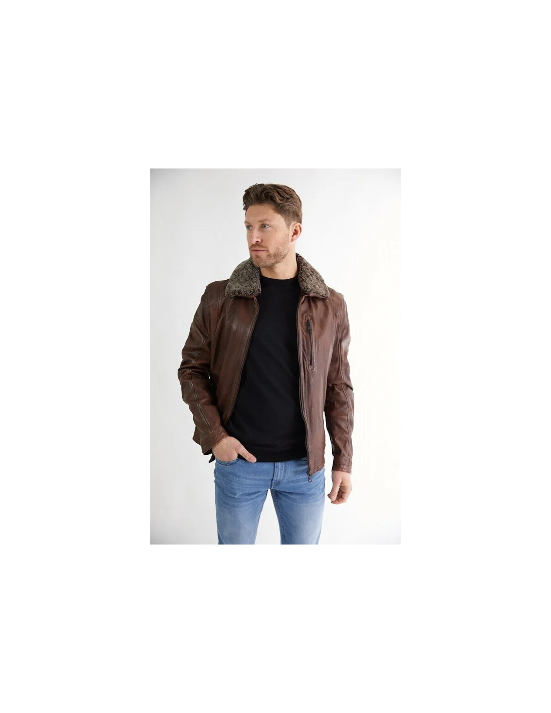 Cazadora de piel para hombre, cuello de pelo desmontable ( 100 % cordero )
