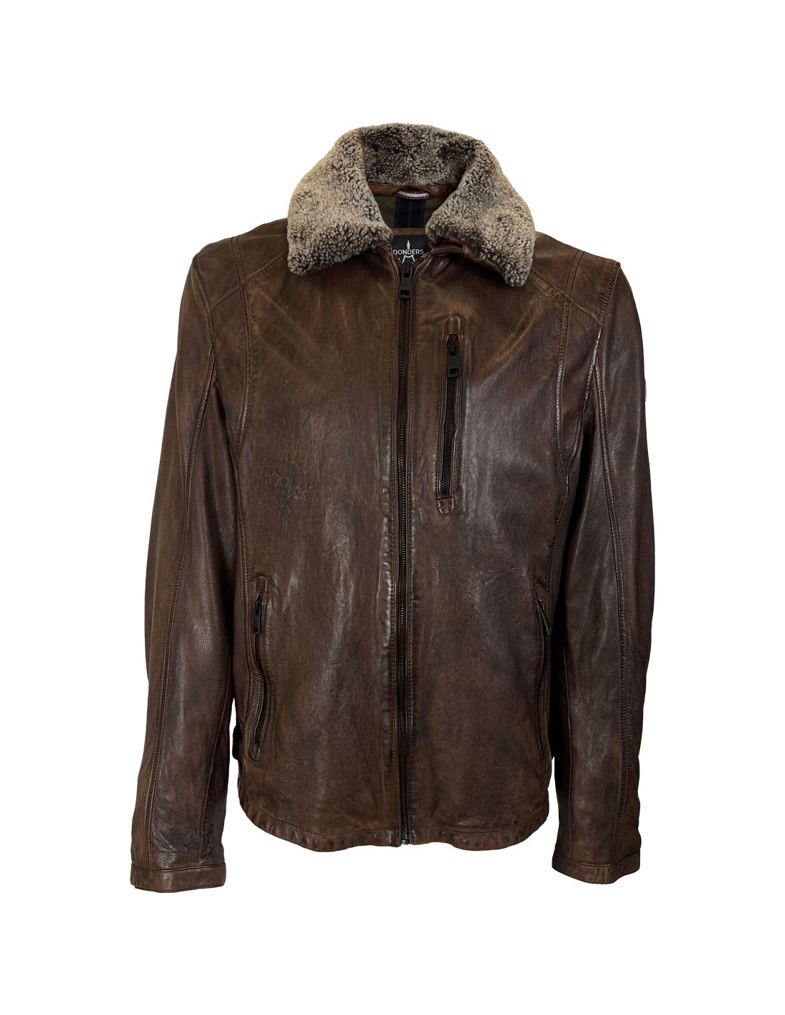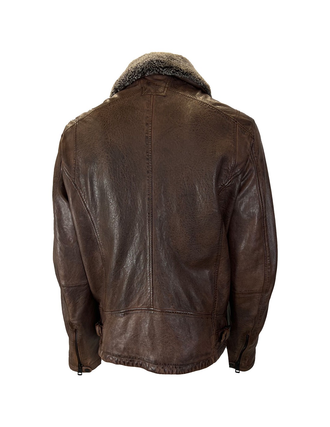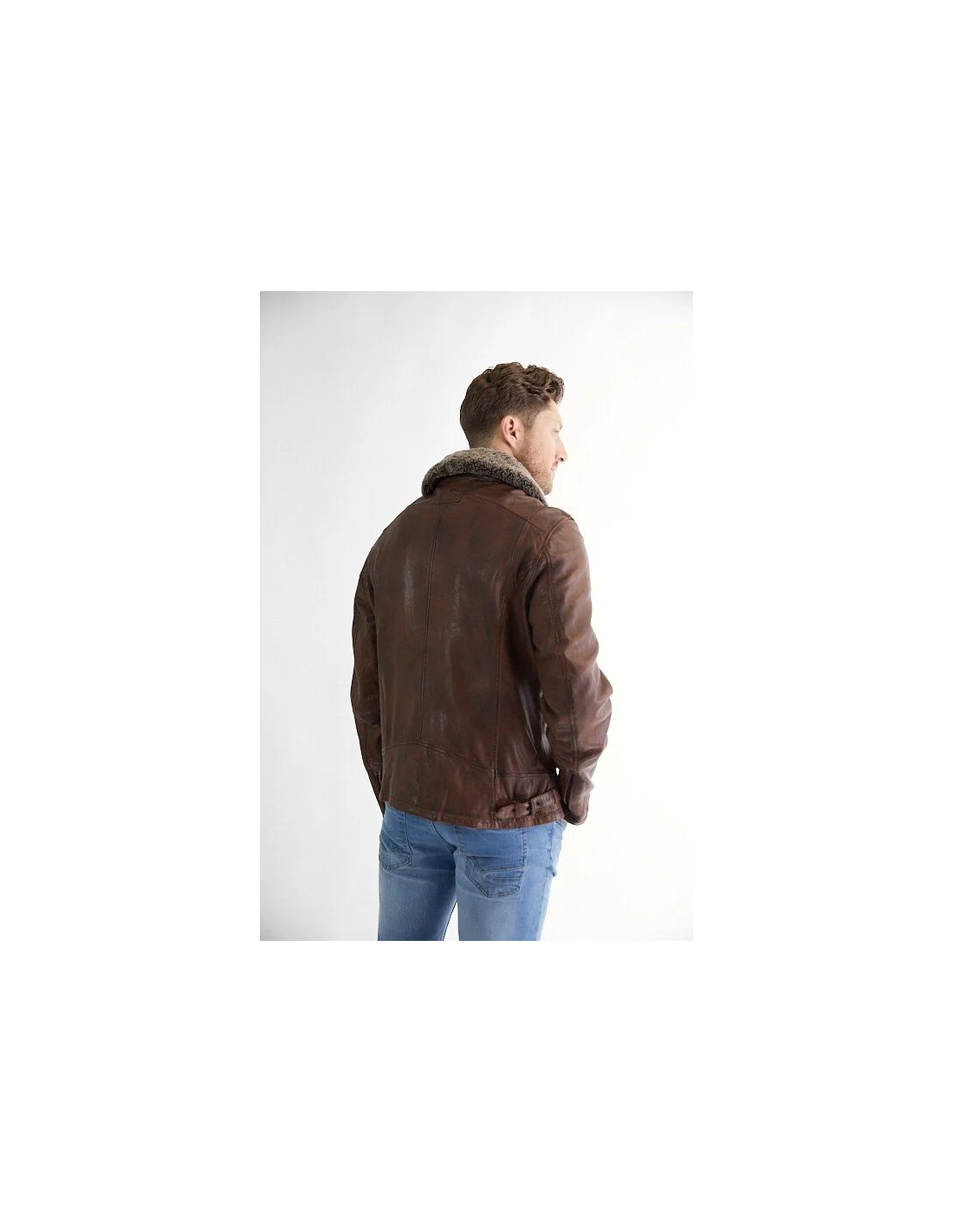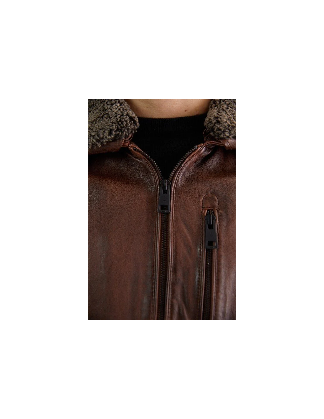 Cazadora de piel para hombre, cuello de pelo desmontable ( 100 % cordero )