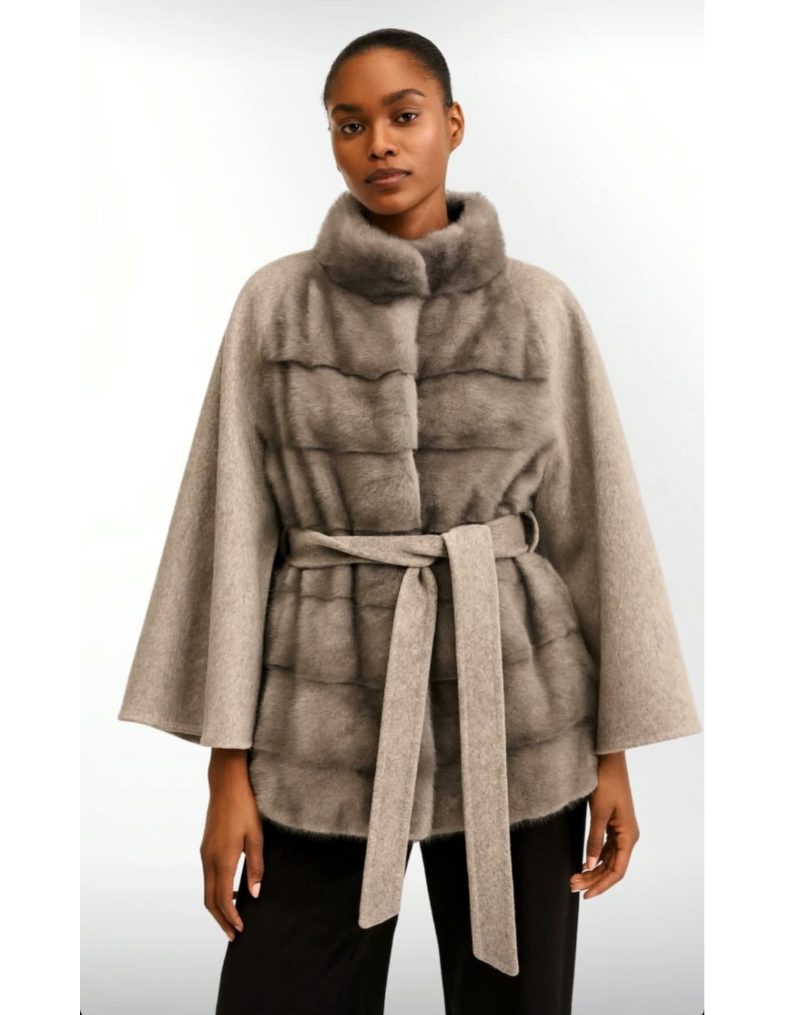 Capa de Mujer de Lomos de Visón combinada con Cachemira de Alta Calidad
