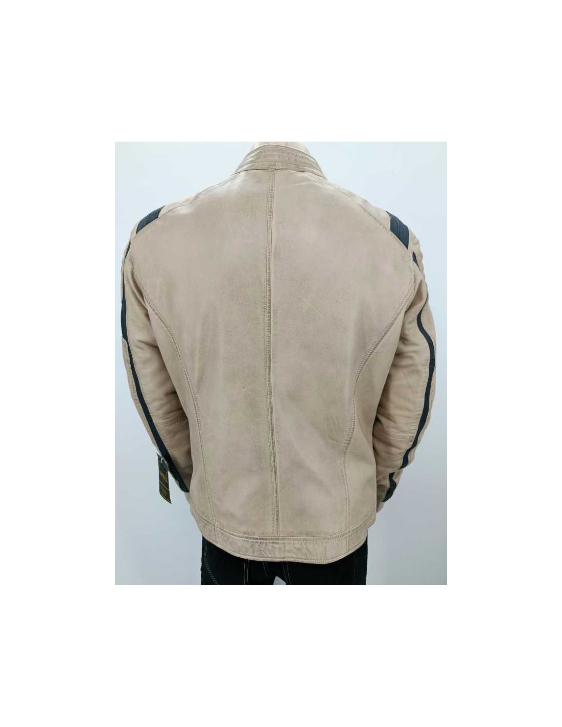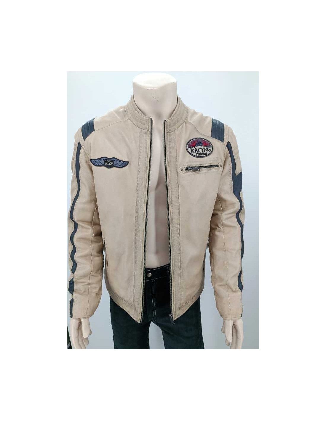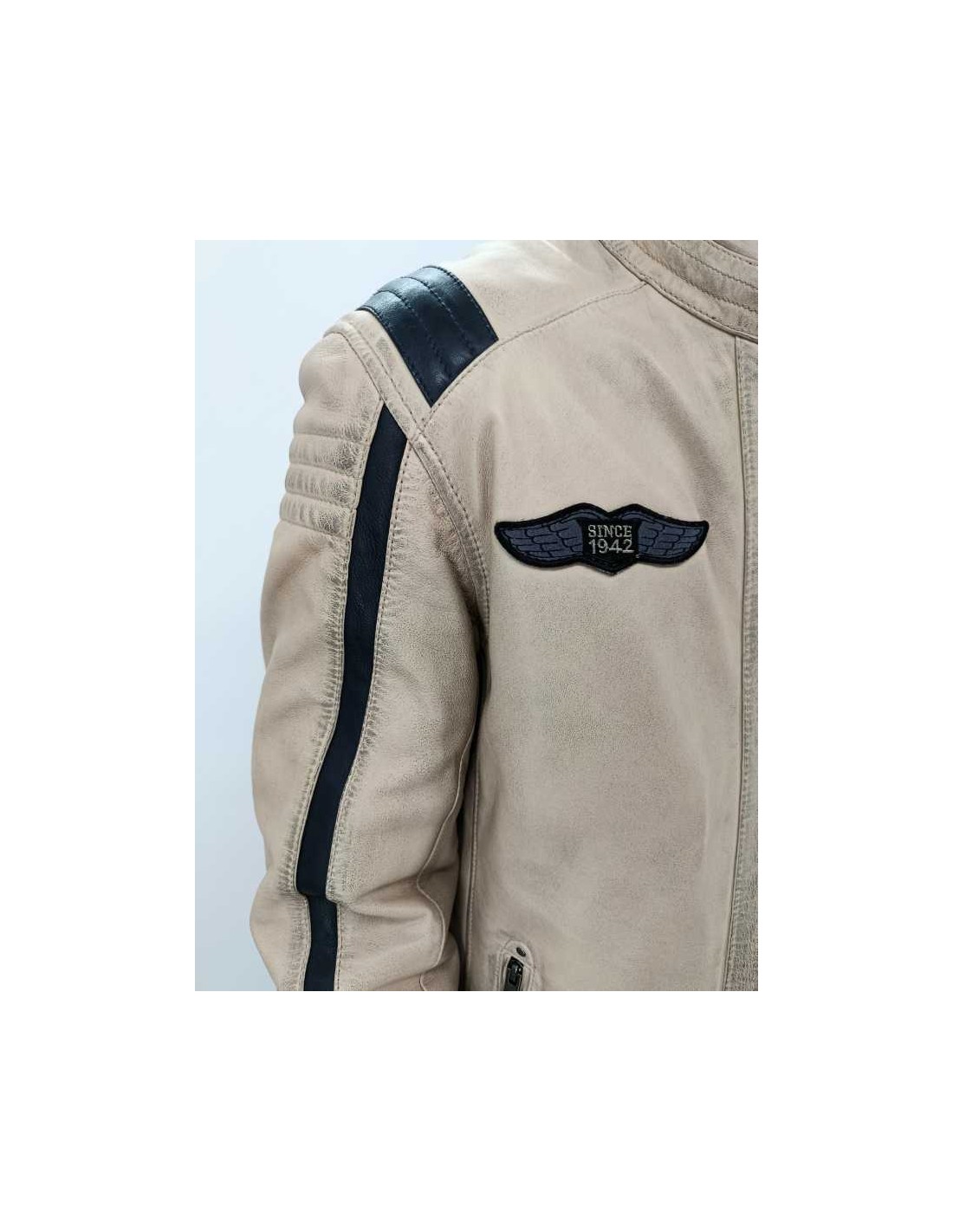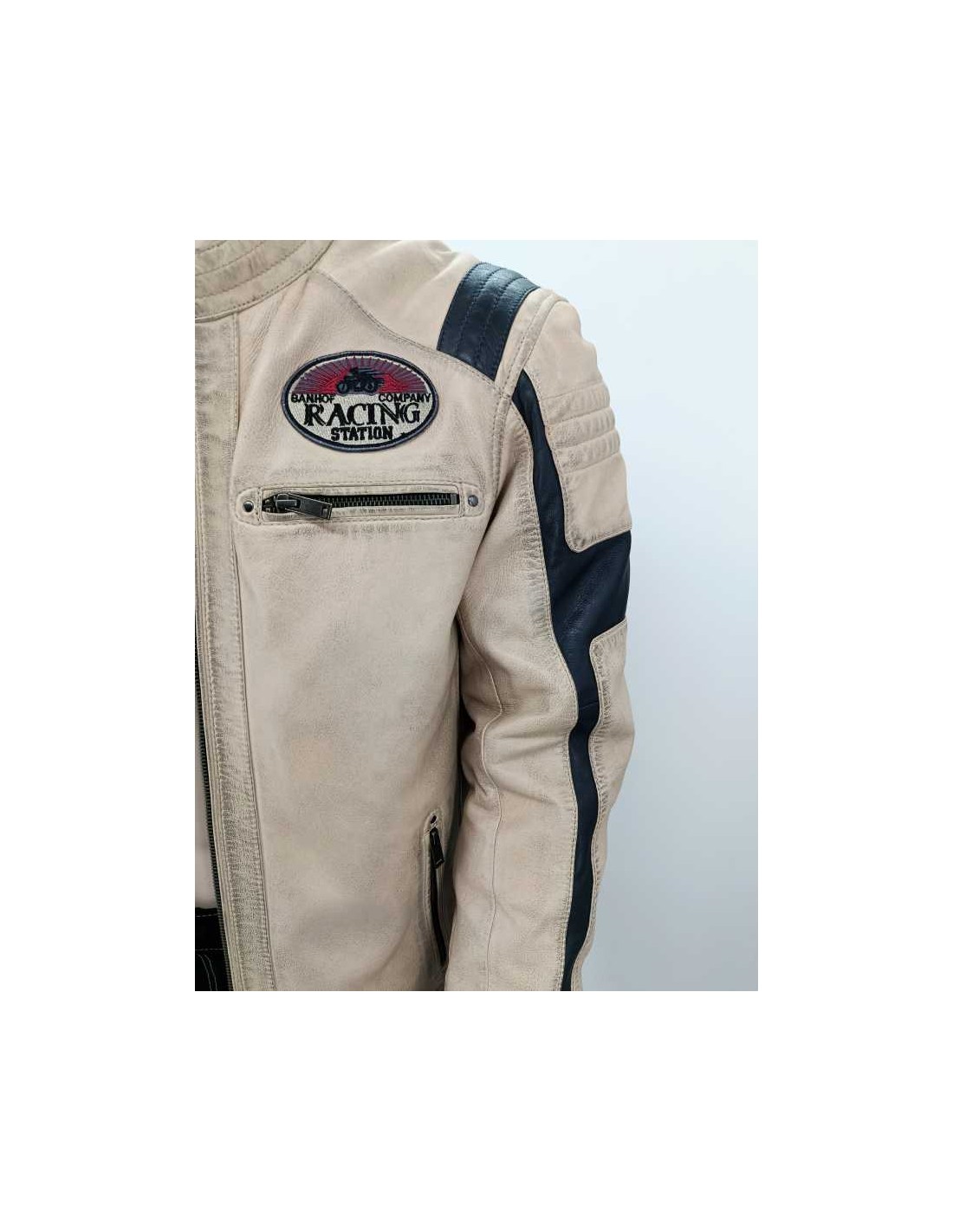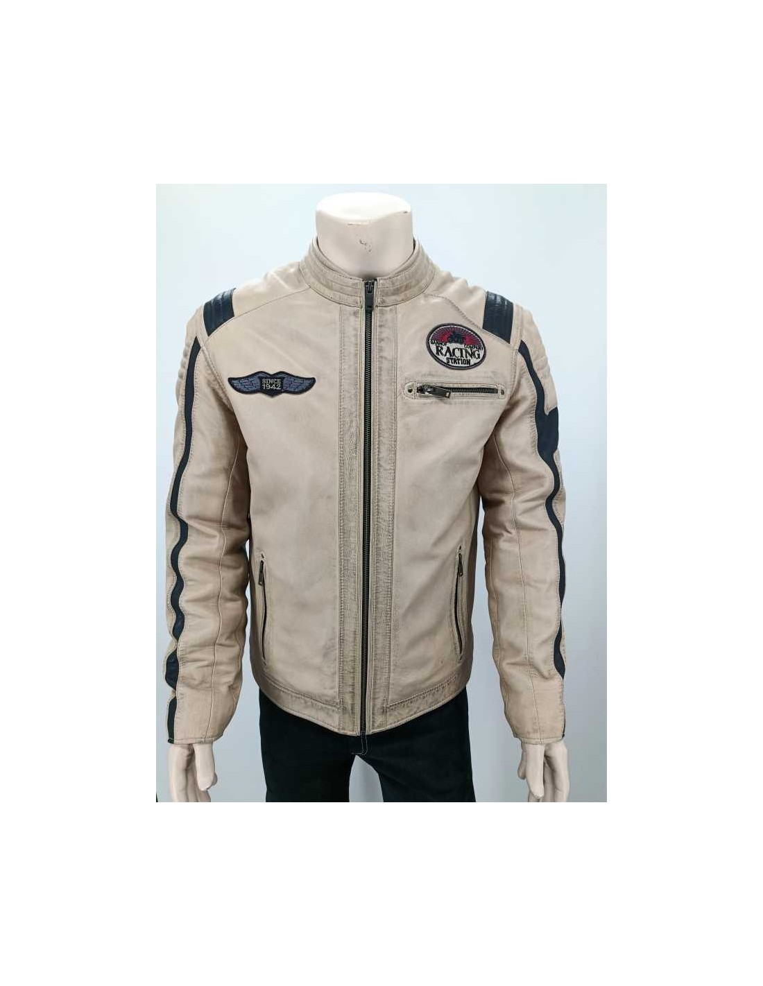 Cazadora de piel entallada ( 100 % cordero ) con adornos acolchados y parches, cremallera central