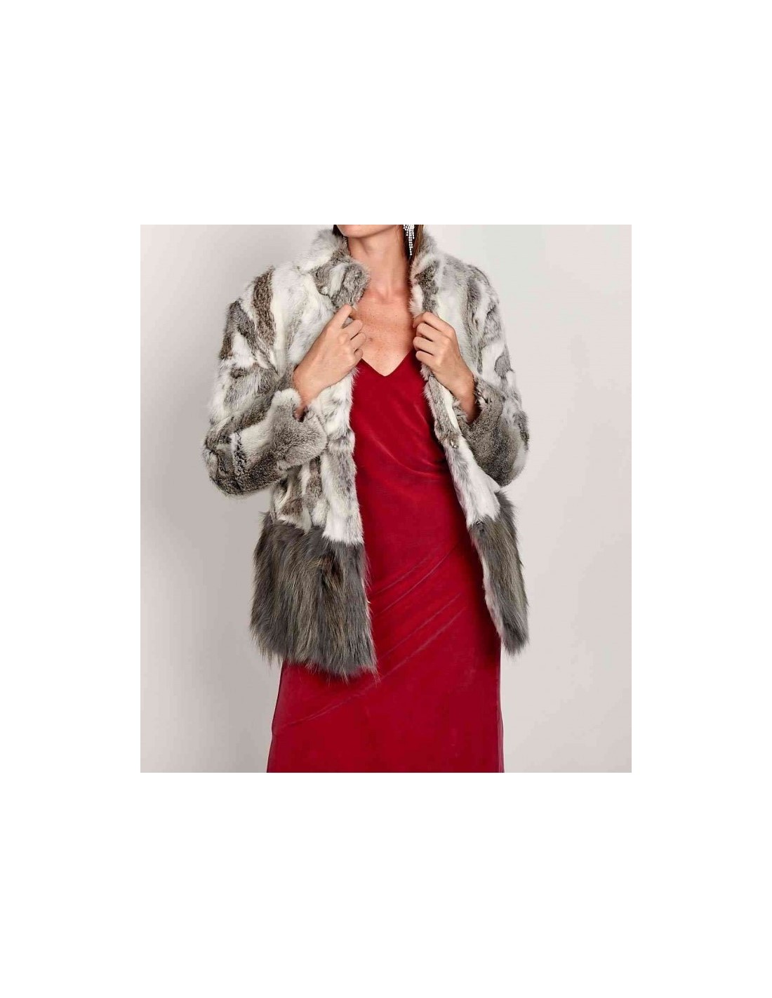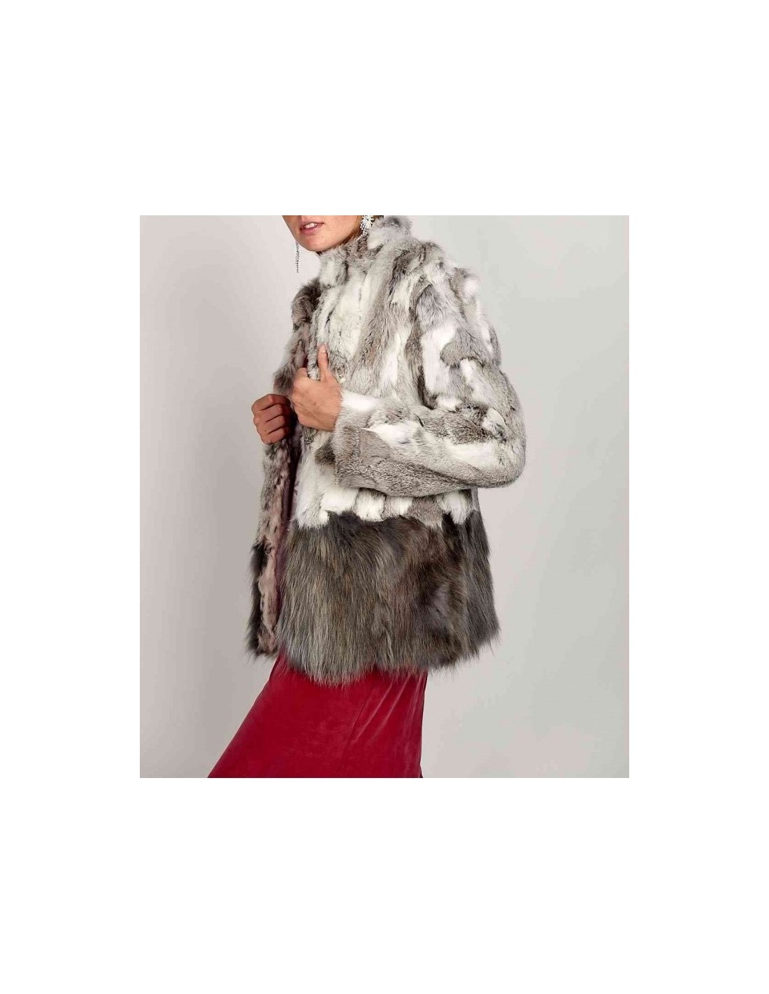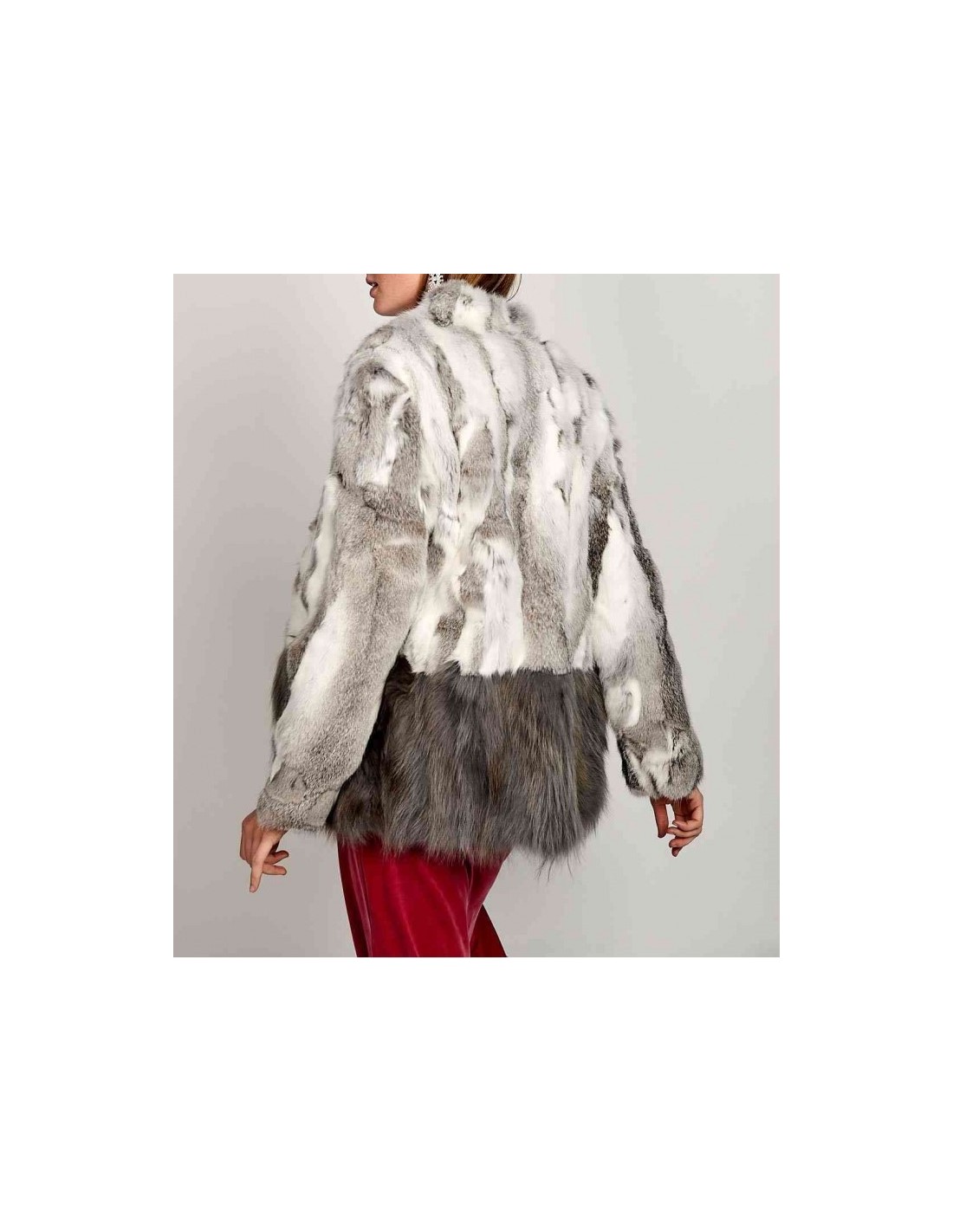 Abrigo de pelo de conejo combinado en la parte inferior